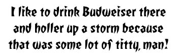 I like to drink Budweiser there and holler up a storm because that was